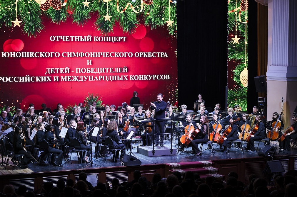 В предзнаменование новогодних торжеств состоялся отчётный концерт юношеского симфонического оркестра и талантливых музыкантов, делающих первые шаги на музыкальном поприще. В концертном зале имени М.П. Максаковой собрались более 200 воспитанников музыкальных школ, средних и высших профильных учебных заведений со всей Астраханской области. По итогам 2023-2024 учебного года все они являются победителями областных, российских и международных конкурсов. Вице-губернатор, руководитель администрации губернатора Астраханской области Павел Паутов от имени главы региона Игоря Бабушкина пожелал творческой молодежи успехов в новом году: «Сегодня в регионе обучается 12 тысяч талантливых детей в детских школах искусств и профессиональных образовательных организациях сферы культуры. Большая часть этих ребят занимается музыкой. Мы гордимся, что у нас создан Юношеский симфонический оркестр, которым руководит Михаил Голиков. Видим прогресс и профессиональный рост юных музыкантов». В концертной программе