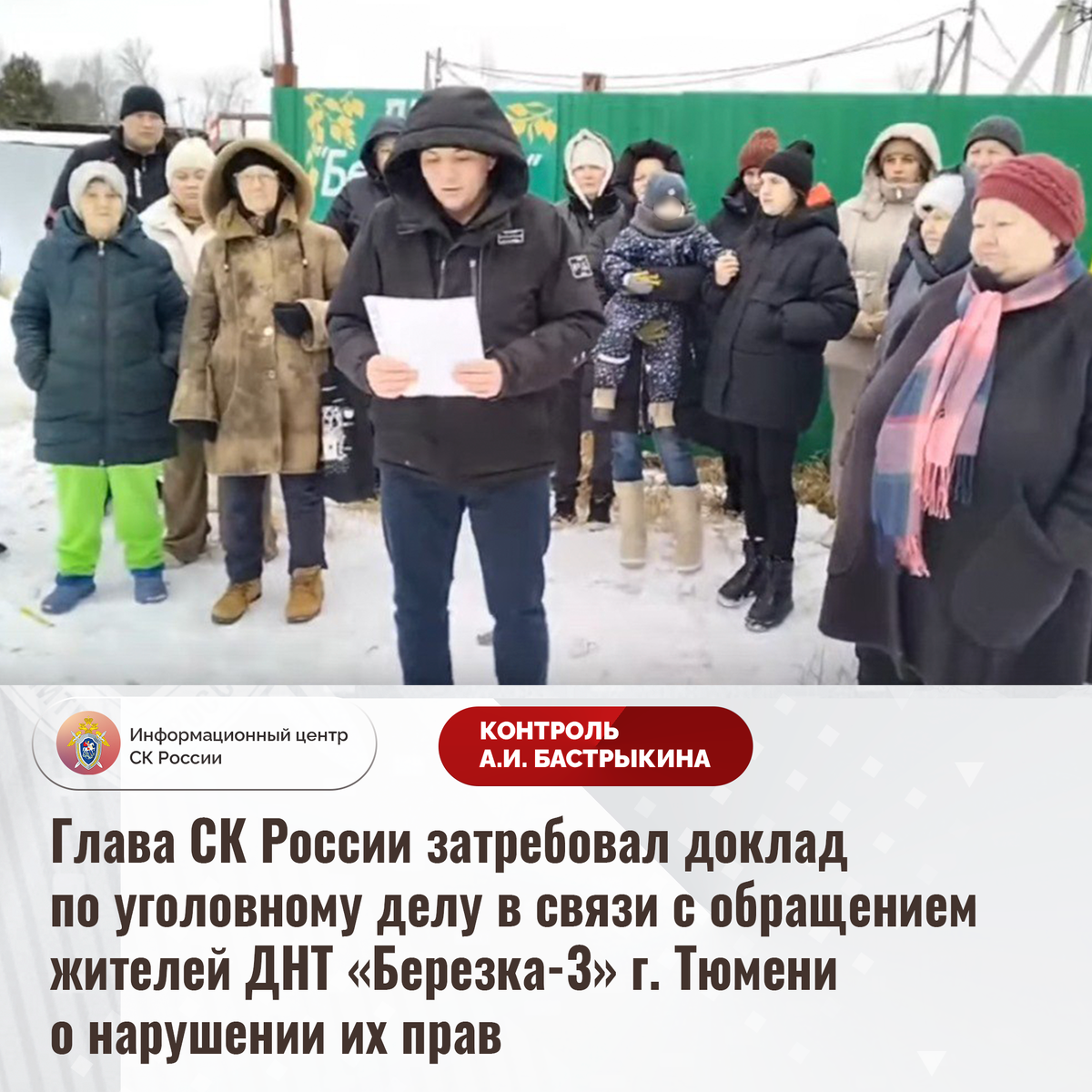 Глава СК России затребовал доклад по уголовному делу в связи с обращением жителей ДНТ «Березка-3» г. Тюмени о нарушении их прав