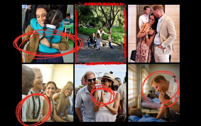 Доказывая, что Меган всегда желает получить главный приз, на первой из шести фотографий Сассексов герцогиня изображена в полном образе Дианы, обнимающей случайного ребенка и блаженно улыбающейся.