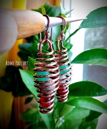 Медные авторские серьги в виде спиралей с натуральными минералами внутри. Выполнены из чистой "живой "меди 99,9% ГОСТ65. Материалы: натуральный кружевной агат (10мм), природный зеленый авантюрин (8мм), натуральный карнелиан-сердолик (8мм), чистая "живая" медь (99,9%, ГОСТ 1965г.) Длина серьги: 65 мм ...Украшения из меди выглядят элегантно и стильно, однако, как и любые другие украшения, медные требуют определенного ухода, чтобы сохранить свой блеск и красоту на протяжении долгого времени. Никогда не оставляйте медные украшения во влажном месте. Избегайте контакта медных украшений с водой, паром. Это может привести к изменению цвета меди, потемнению и потере блеска. ...Очищать медные украшения — простая процедура, которую несложно провести в домашних условиях, достаточно периодически протирать (полировать) изделие мягкой плотной тканью, периодически используя пасту ГОИ. В наличии один авторский экземпляр. ЦЕНА ИЗДЕЛИЯ 2900 руб. +Доставка по РФ 1 классом Почтой России от 350 руб. (расс