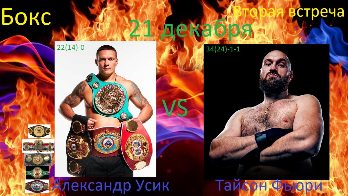 Совсем скоро состоится второй поединок между чемпионом мира по версиям WBC, WBA, WBO, IBO и the Ring Александром Усиком и экс-чемпионом мира, ныне претендентом на титулы Тайсоном Фьюри. Первый их поединок состоялся также в этом году и завершился победой Александра раздельным решением судей. Главное отличие от первого боя, что это уже не будет бой за звание абсолютного чемпиона мира. Пояс IBF перешёл к Даниэлю Дюбуа. Но всё равно как мы понимаем на данный момент, это бой за звание лучшего боксёра тяжёлого веса. Фьюри лучше по антропометрии (на 15 сантиметров выше и на 18 сантиметров длиннее руки.) Усик в отличие от многих оппонентов Тайсона не уступает ему в скорости, а даже чуть быстрее. Первый бой был близким, и многое решил отсчитанный нокдаун. По-моему мнению, несмотря на нокдаун, Фьюри был лучше и у меня получился счёт 116-111 в его пользу. В том поединке Фьюри много валял дурака, за что и поплатился. Думаю, в этом поединке он всё-таки соберётся и не будет дурачится. Реванши он все