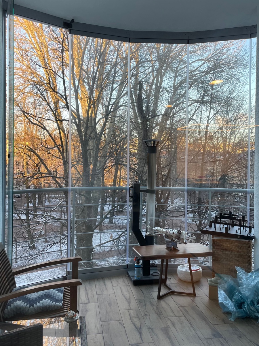 Привет, друзья! Сегодня я хочу поделиться с вами своим опытом установки безрамного остекления на террасе. Я обожаю эксперименты и ремонт, поэтому этот процесс был для меня настоящим приключением. Давайте разберемся, что же это такое и стоит ли оно вашего внимания. У меня достаточно большая терраса, и мне всегда нравилось, когда она была открытая. Это создавало ощущение уюта и простора. Но, конечно, хотелось защитить её от непогоды. Однако мысль о тяжеловесных пластиковых конструкциях меня совсем не радовала. Во-первых, из-за их веса, а во-вторых, из-за того, что они бы закрыли весь шикарный обзор с террасы своими широкими и некрасивыми профилями. И вот, наконец, я узнала о безрамных конструкциях. Они оказались настоящим спасением! У меня радиусный балкон, и мне аккуратно установили профиль и стекла. Стекла легко скользят и складываются в одну сторону, что позволяет на лето полностью оставлять террасу открытой. Это просто мечта! И,пожалуй, на этом все. Безрамное остекление — это отличн