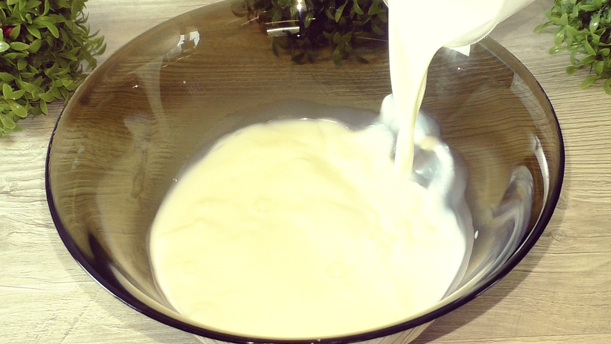 Начнем с того, что в глубокую миску нужно налить тёплое молоко.