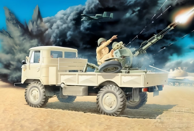 В интернете появились уникальные кадры новейшей зенитной установки, созданной на базе знаменитого советского вездехода ГАЗ-66. Этот нестандартный проект включает четыре пулемета "Максим" образца 1931 года, размещенных не линейно, а квадратом, что значительно увеличивает плотность огня.