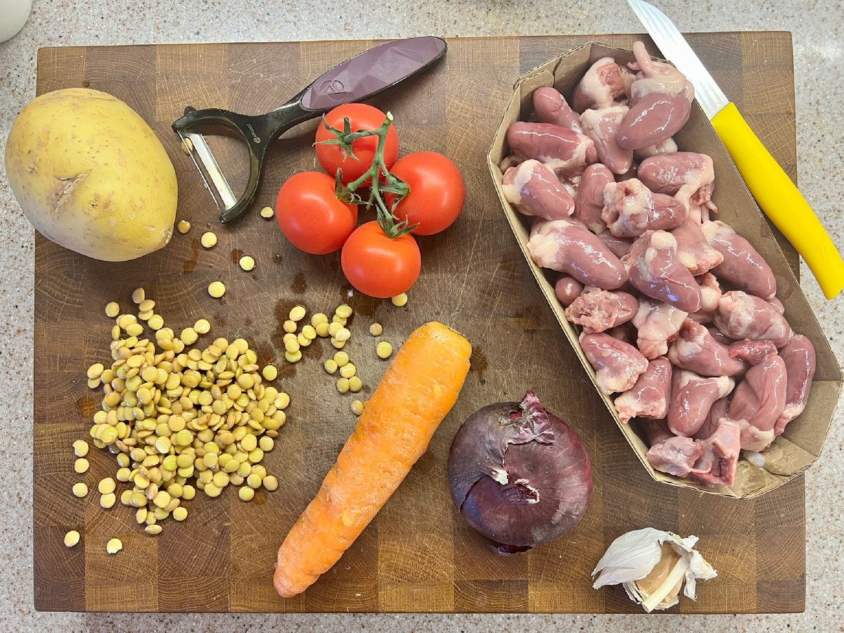 Итак, чечевица чечевицей, а у нас еще сердечки. Знаете как мой супруг называет суп без белково-мясной составляющей? Безалкогольный (ха ха). Так что пришлось добавлять. В общем перемен (сердечек) требуют наши сердца 🤘🏻