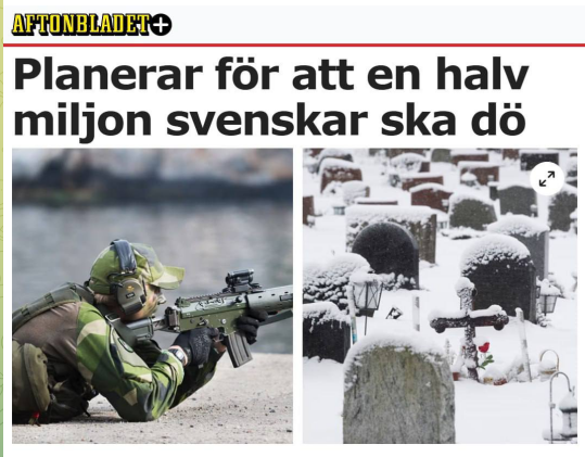 В статье утверждается, что власти Швеции уже поручили похоронным бюро спланировать захоронение всех, кто погибнет на войне.