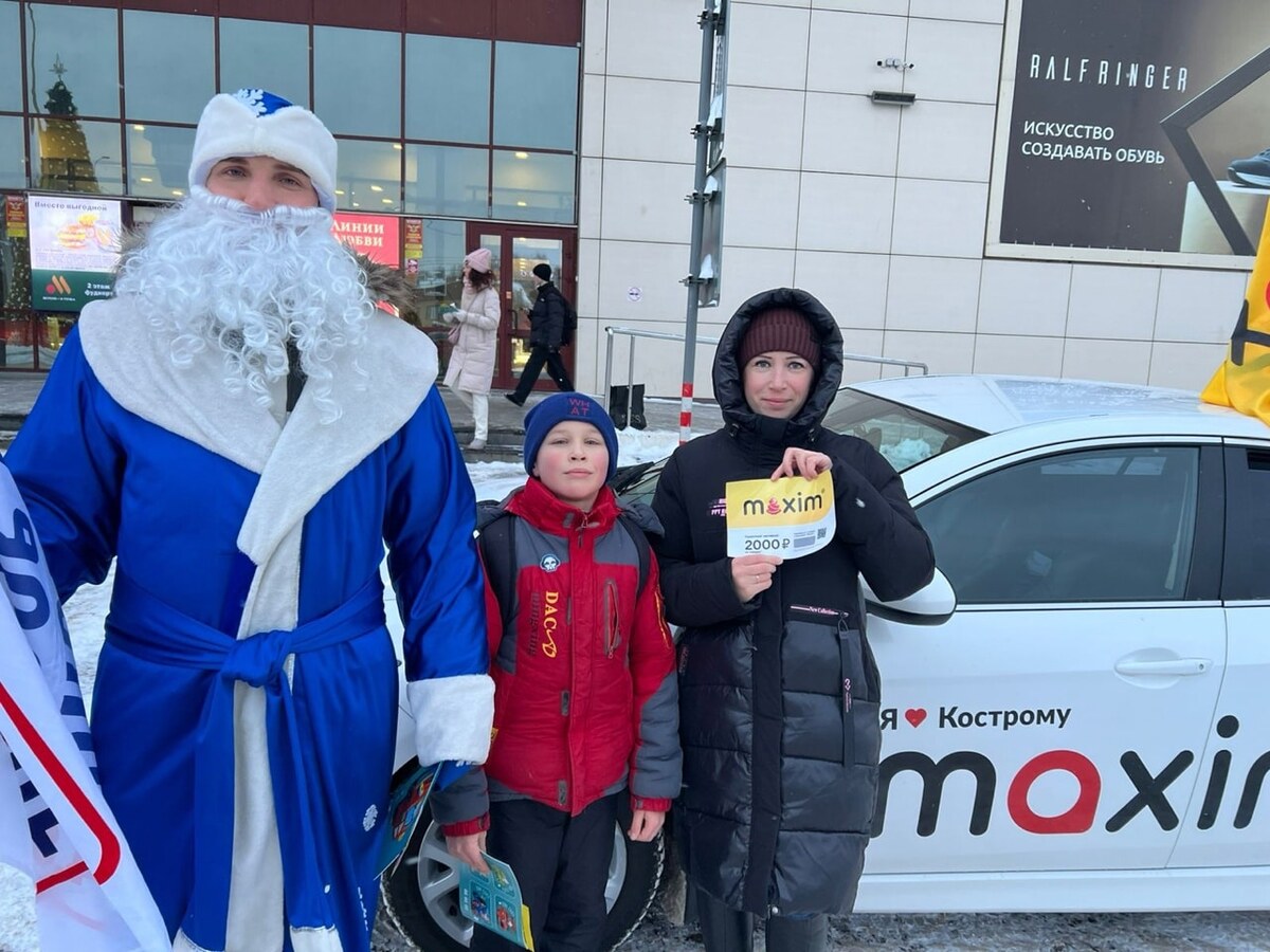 Русское радио Кострома 104, 8 FM и сервис «Максим» поздравили жителей и гостей Костромы С Новым Годом необычным способом Для начала Русское радио Кострома запустило в своем эфире игру под названием «Поймай Деда Мороза». Ведущие озвучивали время и место, где нужно было ловить зимнего волшебника, а также называли кодовые слова. На прошлой неделе Дед Мороз, Русское радио и сервис «Максим» — партнер розыгрыша — раздавали подарки в ТЦ «Галерея» и у ТЦ «РИО». Заветными словами была фраза: «А где Снегурочка?». Первый, кто успел задать этот вопрос Деду Морозу, получил сертификат на любые поездки в такси «Максим» на 3 тысячи рублей, второй и третий — на 2 тысячи и тысячу соответственно, также сервис дарил промокоды. А малыши получили яркие раскраски с правилами дорожного движения от сервиса заказа такси. Тем, кто Деда Мороза не застал, огорчаться не нужно. «Максим» приготовил новогодние подарки для всех. По промокоду «НАСТУПАЕТ25» новые пассажиры или те, кто не пользовался услугами сервиса 90 д