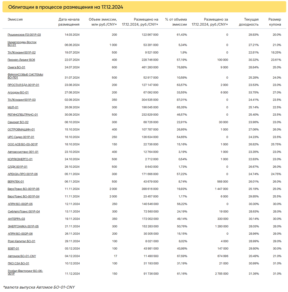 17 декабря новых размещений не было. Суммарный объем торгов в основном режиме по 461 выпуску составил 921,3 млн рублей, средневзвешенная доходность — 26,71%. 📊 Подробнее в ВДОграфе Больше актуальных новостей читайте оперативно в нашем телеграм-канале