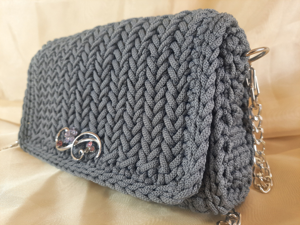 Представляю вашему вниманию эксклюзивную сумочку-клатч Grey Silk, созданную вручную с любовью и вниманием к каждой детали! Эта модель идеально подойдет для вечерних выходов: будь то поход в театр, посещение концерта или любое другое торжественное мероприятие. Особенности: - Вязание выполнено из высококачественного полиэфирного шнура толщиной 3 мм, который дарит ощущение мягкости и гладкости, словно настоящий шелк! - Цвет «Графит» добавит элегантности любому образу, подчеркивая ваш стиль и утонченность. - Размеры сумки: 24 x 17 см – идеальный формат для всех необходимых мелочей. - Длина плечевого ремня составляет 110 см, что позволяет носить сумку как через плечо, так и в руке. - Фурнитура цвета серебра придает изделию завершенный вид и подчеркивает его изысканность. - Сумка закрывается на две магнитные кнопки, обеспечивая удобство использования и безопасность ваших вещей. Почему стоит выбрать именно эту сумку? - Эксклюзивность: каждая деталь выполнена вручную, поэтому ваша сумка будет