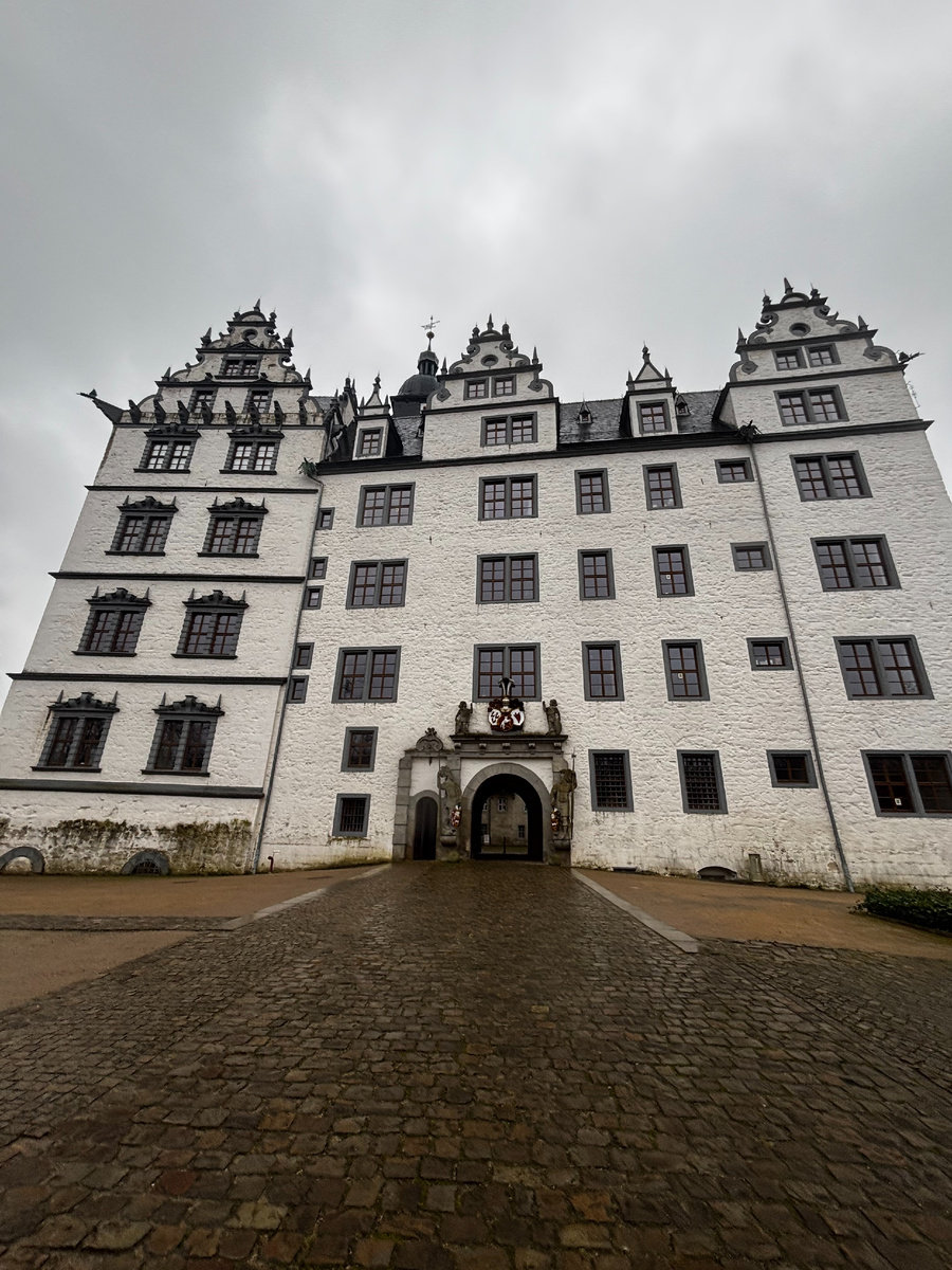 Вольфсбург сравнительно молодой город, основанный в 1938 году прошлого века, чего не скажешь об одноименном замке поблизости. (Кстати, изначально город назывался Stadt des KdF-Wagens, но в 1945 году его переименовали в честь замка). Первое упоминание о нем встречается аж в 1302 году. Сначала это была жилая башня, потом крепость, а в 17 веке замок Вольфсбруг превратился в главную резиденцию. Замок был расположен на границе Ганноверского и Брауншвайгского княжеств, о чем гласит камень и надпись при входе. Во времена Второй Мировой войны в здании замка открылся приют для беженцев, а с 1960 годов его отдали людям искусства. Сейчас в нем проводятся различные выставки и культурные мероприятия. Ниже фото замка в профиль, анфас, со двора и всех ракурсов. На данный момент здесь проводился выставка современного искусства. Современное искусство мне, как минимум, непонятно, поэтому внутрь мы не заходили, а просто побродили по округе. На фото пример такого искусства. Стальная фигура непонятной