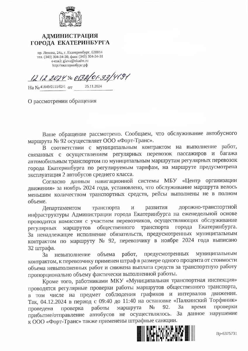 Всем перевозчикам в Екатеринбурге не помешает вызубрить народную мудрость. На сей раз провинилась компания «Форт-Транс». Она фактически оставила Палкинский Торфяник, отдаленный поселок, без связи с центральной частью города. За свои проступки фирма заслужила изобилие штрафов от мэрии. Только поможет ли наказание рублем?! Администрация города уповает, что со следующего года искоренит подобные ситуации. Для этого чиновники поменяют систему расчетов с транспортниками. Выручка с продажи билетов начнет поступать напрямую в бюджет, а муниципалитет уже будет платить за совершенные рейсы, а не за количество перевезенных пассажиров.