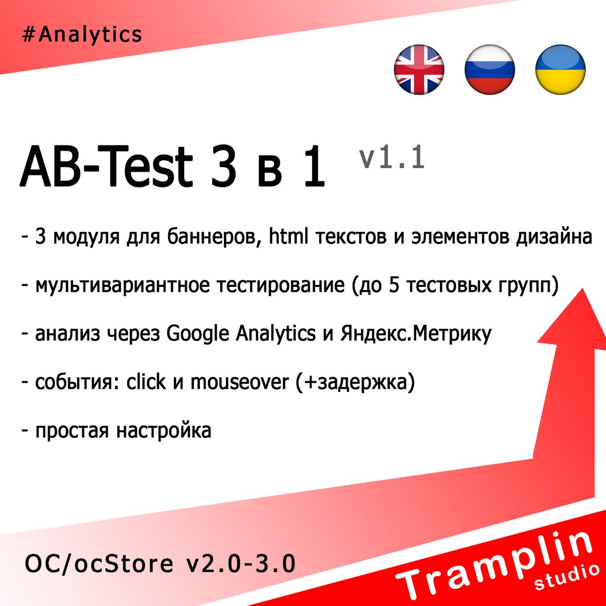 Модуль «TS AB-Test 3 в 1» для Opencart: Повышение Эффективности Маркетинга Если вы ищете способ повысить конверсию своего интернет-магазина на CMS Opencart, то модуль «TS AB-Test 3 в 1» от ProDelo может стать идеальным решением. Этот набор простых, но мощных маркетинговых инструментов предназначен для повышения эффективности ваших баннеров, слайдеров, HTML текстов и любых других элементов дизайна в OpenCart с помощью аналитического метода «АБ-тестирования» (Split test). Основные Функции Как Использовать Вывод Модуль «TS AB-Test 3 в 1» от ProDelo является мощным инструментом для повышения эффективности маркетинга в интернет-магазинах на CMS Opencart. С его помощью вы можете легко и эффективно тестировать различные элементы дизайна, что приводит к повышению конверсии и увеличению доходов. Если вы ищете способ улучшить результаты вашего интернет-магазина, то этот модуль является идеальным решением.