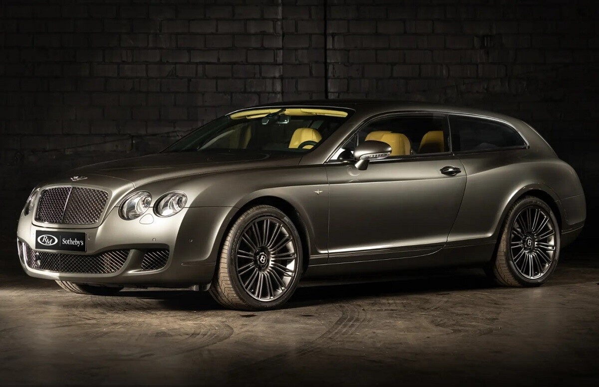 Аукционный дом RM Sotheby's выставит на торги необычную версию Bentley Continental. Речь идёт об эксклюзивной модели Flying Star в кузове shooting brake (нечто среднее между купе и универсалом). Трёхдверный автомобиль построен на базе модели Bentley Continental GTC итальянским ателье Carrozzeria Touring Superleggera, основанным ещё в середине 20-х годов прошлого века. Машина имеет четыре полноценных сиденья (задние при желании можно сложить) и вместительный по меркам купе багажник объёмом 400 л. Длина модели достигает 4,8 м, ширина — 1,9 м, высота — 1,4 м. Масса составляет 1,5 т. При переделке исходному Bentley Continental удлинили на 30 мм двери и задние крылья, а также добавили кастомные задние фонари и дверь багажника. Серый металлик, в который выкрашен кузов, — тоже цвет от итальянского ателье. Салон отделан кожей оттенка Saffron, ореховым шпоном и оснащён камерой заднего вида, двухцветным рулевым колесом, контрастной прострочкой, коврами с глубоким ворсом и передними сиденьями с п