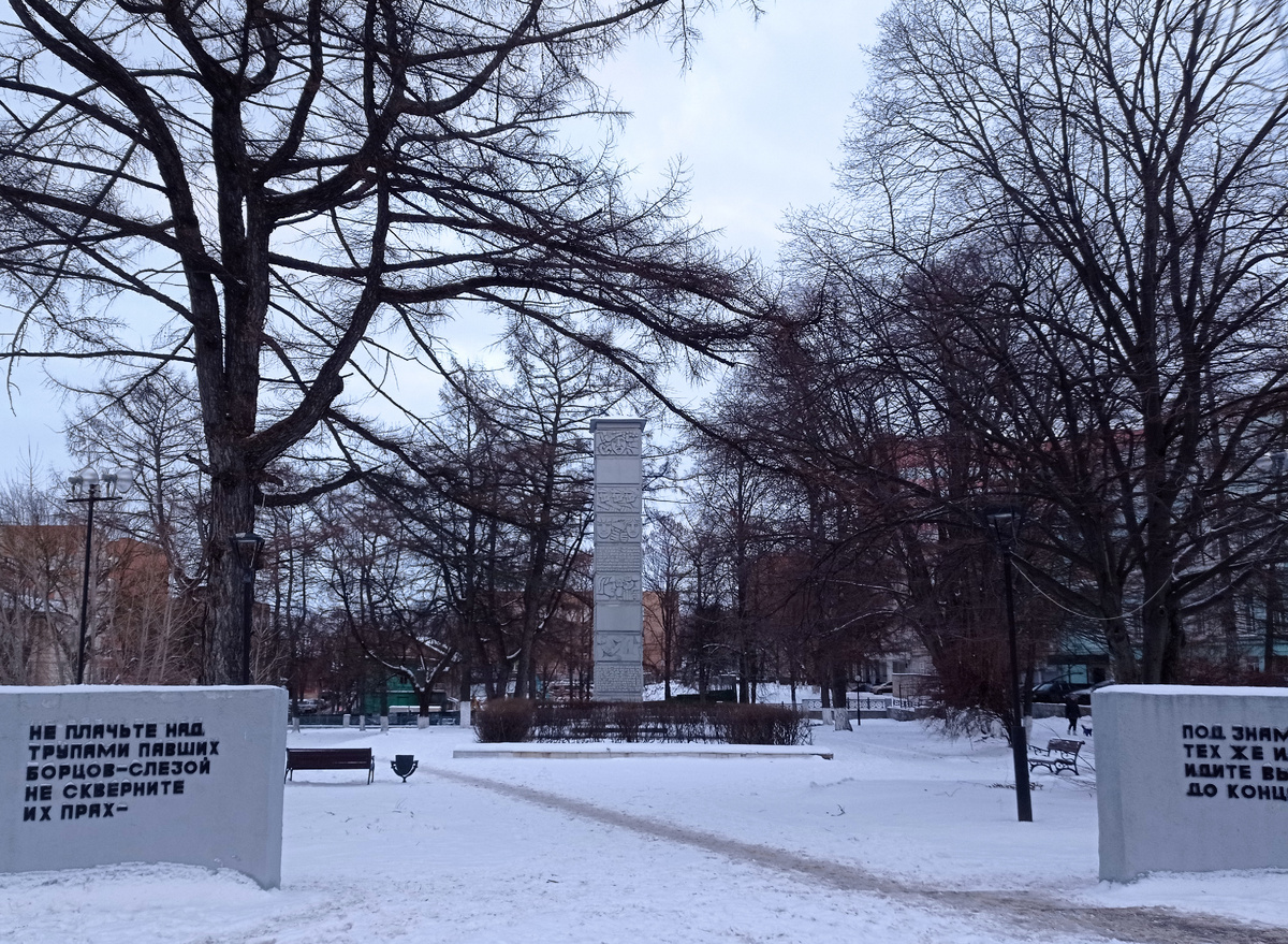 Хочется показать, какой декабрь 2024 года у нас в городе. Зима пока теплая, погода в этом месяце разная, то снег пойдет, а то потеплеет. Пошла на прогулку полюбоваться как украшают город к Новому году, и его зимнее преображение. До белоснежной зимы пока далеко, где то снег убрали, а где он и растаял. Заснеженный и одинокий встретил меня сквер Коммунаров на углу проспекта Ленина и улицы Гоголевской. Уютный, ухоженный, утопающий в зелени летом, сквер Коммунаров в центре Тулы. Сто лет назад носил название – кладбище Коммунаров. До революции на этом месте располагался деревянный театр О.П. Зарайской, фасад выходил на ул. Гоголевскую. Репертуар театра был разнообразен – от водевилей до классических постановок. Выступали и столичные знаменитости – Михаил Щепкин, один из основоположников русской актерской школы, Пров Садовский. К осени 1917 года театр прекратил свое существование (по некоторым данным сгорел), а в 1918 на углу Киевской и Гоголевской появилось кладбище Жертв Революции. Р
