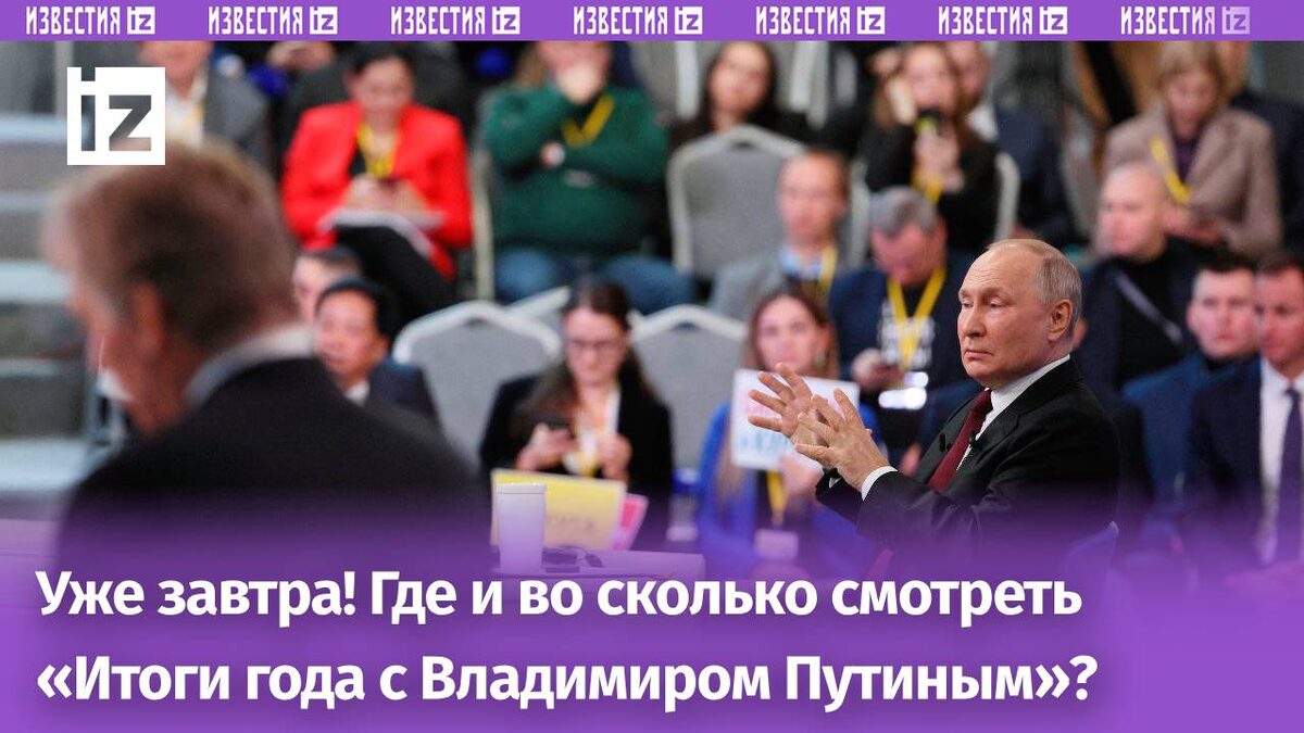 В четверг, 19 декабря, состоится программа «Итоги года с Владимиром Путиным». Она объединит прямую линию с президентом и большую пресс-конференцию. «Известия» рассказывают, когда и где смотреть трансляцию этого события, сколько оно продлится и как отправить вопрос. Прямая линия с президентом России Владимиром Путиным традиционно начнется в 12:00 мск в четверг 19 декабря. Трансляция ожидается на федеральных каналах («Первый» и «Россия 1»), а также на официальных страницах «Итогов года с Владимиром Путиным» в социальных сетях «ВКонтакте» и «Одноклассники». Кроме того, мероприятие осветят некоторые радиостанции: «Маяк», «Вести FM» и «Радио Россия». Посмотреть программу в прямом эфире можно на сайте «Известий». По длительности «Итоги года с Владимиром Путиным» обычно занимают около четырех часов, но год от года точное время меняется. Президент успевает ответить больше чем на 70 вопросов.Так, самая долгая пресс-конференция президента с журналистами состоялась в 2008 году: она длилась 4 часа