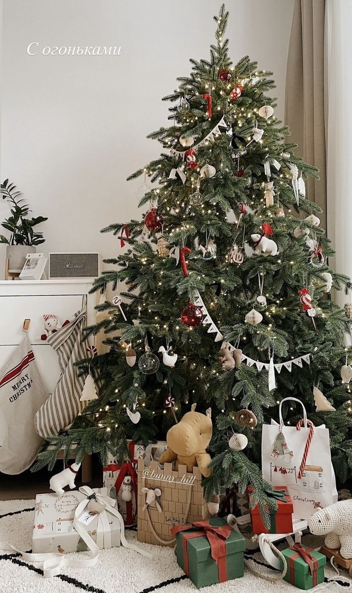 Но начну обзор все же не с ёлочных игрушек, а с ёлочек. Маленькие ёлочки я очень люблю и всегда обращаю на них внимание. Их можно разместить в любой комнате. У меня именно так. В каждой комнате по ёлке, а то и не по одной)). Ёлочка справа по фактуре очень похожа на наши сосны. Относительно недорогая ёлка (если с ценами на маркетплейсах сравнивать). Размер 35*45 см. У ёлок в ХОФФ есть свои имена). Эта ёлочка называется Деневер. Елка слева называется Нарвик. Размер такой же. Она конечно поинтереснее.