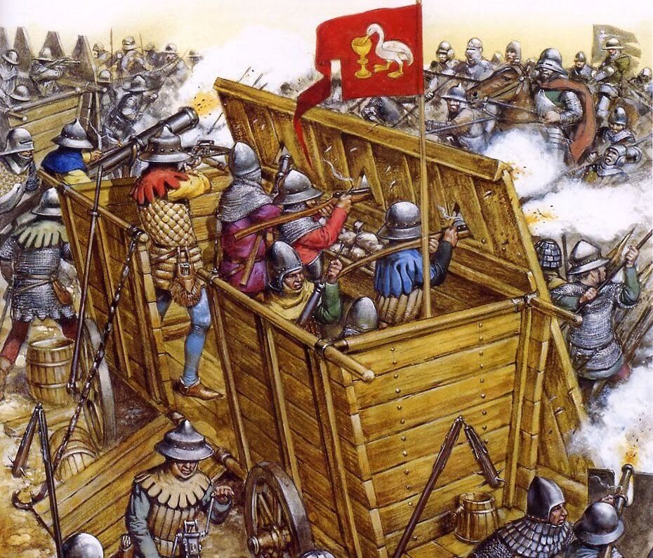 Вскоре на горе Табор возникло укреплённое поселение «сторонников Яна Гуса», у которых «по волшебству», «из ниоткуда», появились бомбарды, аркебузы, порох и т.п. Всем этим крестьяне, якобы, умело пользовались без всяких инструкторов и профессионалов, в т.ч. отлично знали тактику ведения боевых действий с использованием военной новинки - «вагенбурга». Не говоря уже о больших деньгах на закупку огромных партий продовольствия, которое привозил неизвестно кто, и неизвестно откуда… Т.е. за деятельностью «гуситов» откровенно просматриваются коэны.