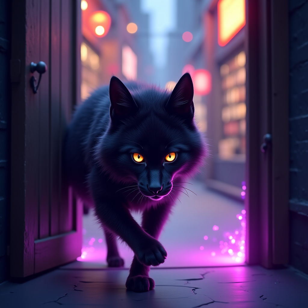 Напряжение в книжной лавке сгустилось, как туман. Нокс, спрятавшись за стеллажом, чувствовал, как напрягаются мускулы под его чёрной шерстью. Незнакомец в плаще не был обычным посетителем. В его ауре чувствовалась сила, тёмная и тревожная, словно отголосок давно забытого заклинания. Элиас, дрожащими руками пытаясь успокоить незнакомца, сказал: «Я… я не знаю ни о каком коте… У меня здесь только книги». Его голос дрожал, как тонкая страница под порывом ветра. Незнакомец презрительно фыркнул, его голос стал громче и резче: «Не лги мне, старик. Я чувствую его присутствие. Этот колдун прячется здесь, и он мне нужен». Он шагнул к прилавку, и Нокс почувствовал, как энергия вокруг него закружилась, готовясь к битве. Нокс понимал, что не может оставаться в стороне. Элиас, хоть и был добрым, был слаб и не смог бы защититься от этого человека. С грацией пантеры Нокс выпрыгнул из-за стеллажа и грациозно приземлился на прилавок прямо перед нависшим над стариком незнакомцем. Его изумрудные глаза го