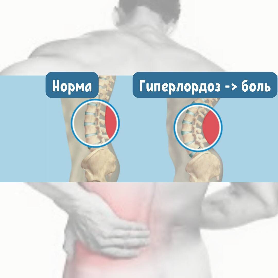 Из разговора с подопечной: - Часто спина побаливает, у меня просто в пояснице лордоз Мои глаза неконтролируемо становятся еще круглее, чем обычно. В пояснице у всех есть лордоз, у кого больше, у кого меньше. Но болит-то не у всех Нет, я понимаю, что имеется в виду избыточный поясничный лордоз, или гиперлордоз. И здесь часто бывает подмена понятий. Гиперлордоз, как и сколиоз, может являться врожденной патологией. Но важно понимать, что в подавляющем большинстве случаев у обычных здоровых людей причина боли вообще не в патологии позвоночника Поясничный лордоз - это естественный изгиб позвоночника в области поясницы. Позвоночник должен быть изогнутым для лучшей амортизации в условиях гравитации. Это следствие нашего прямохождения, у животных и позвоночник прямее, и попы нет - нет нужды удерживать положение тела вертикально, ничего лишнего. Избыточный лордоз в пояснице - это передний наклон таза. Живот расслаблен и вывален, таз наклонен кпереди, в пояснице усиливается изгиб и появляется ги
