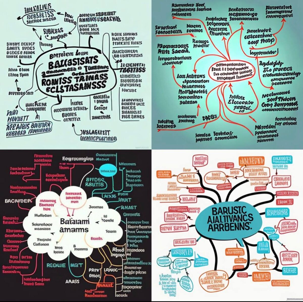 Итак, действуем по инструкции! Но для начала попросил нейросеть скомпоновать вам визуальный пример подобного разбора с помощью mindmap. Берём за основу Пикчу ниже и активно пользуемся ) 1. Берем чистый лист A4 и ручку или карандаш; 2. В центре листа пишем тему или идею, по которой хотим провести мозговой штурм; 3. Делим эту идею на 4 главных подтемы; 4. Каждую из этих 4 тем, делим на 3 части; 5. Каждую из этих частей подробно расписываем. Пишем все, что об этом знаем. Если не знаем гуглим или звоним другу; 6. Пишем на обратной стороне листа свой личный вывод по каждой подтеме; 7. Пишем наши будущие действия согласно этим выводам - не меньше 10; 8. Выбираем из них 5 самых лучших; 9. Из 5 самых лучших выбираем только 3 универсальных; 10. Через 3 дня или неделю пробуем все тоже самое, не подглядывая и сравниваем результат. Необязательно , но поверьте - увлекательно ) Сделаем совместно эту неделю продуктивнее для друг друга, сделав эти несколько действий 👨🎨 #саморазвитие #нейросети