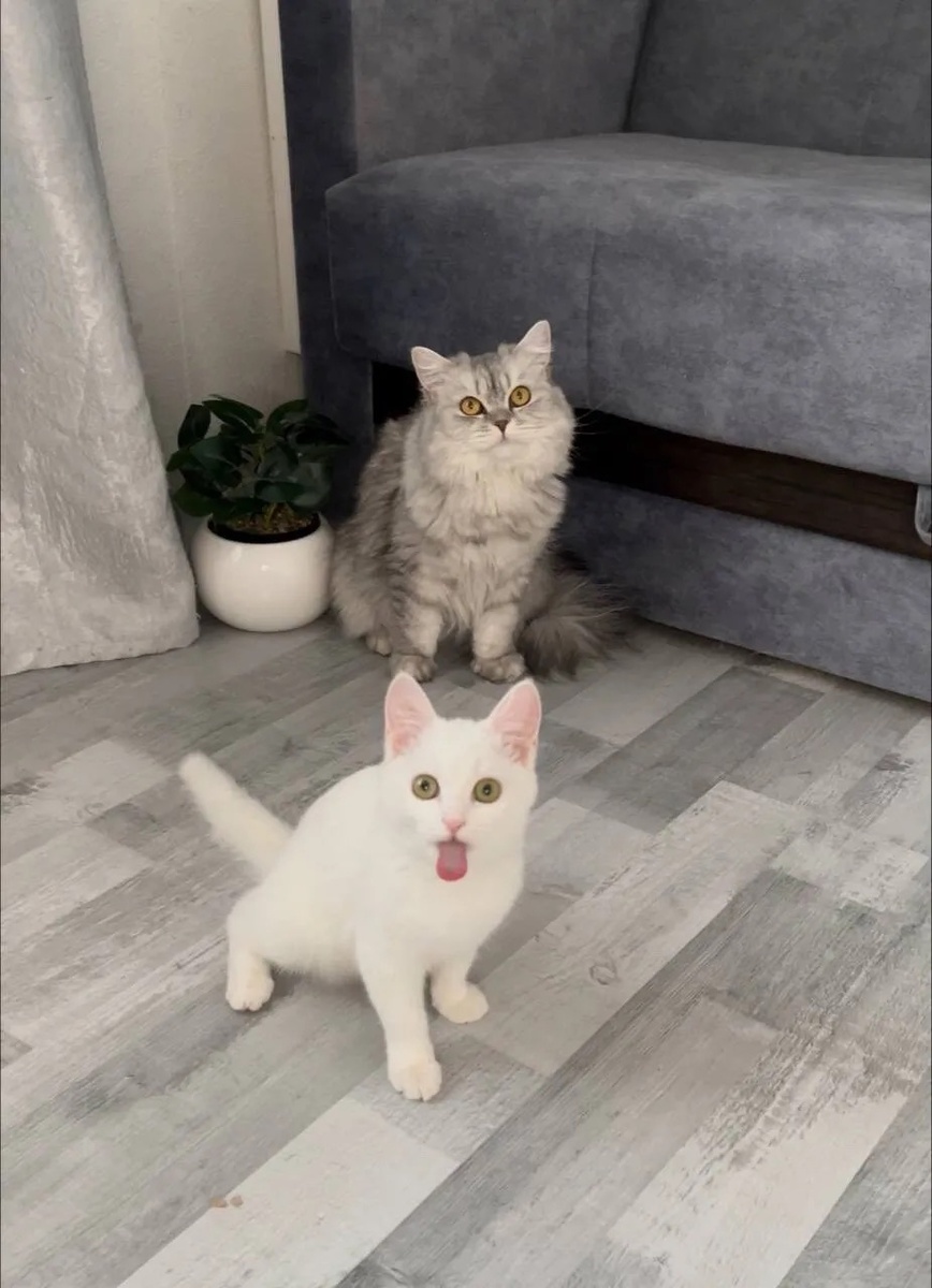 Я сразу не придала значения, но заметила, что как только котенок начинает мяукать или рычит Мята, Ника тут же несётся проверять все ли в порядке! Как-то раз я случайно наступила Аляске на хвост, та закричала, и молниеносно откуда-то вылетела Ника с готовностью защитить малышку!