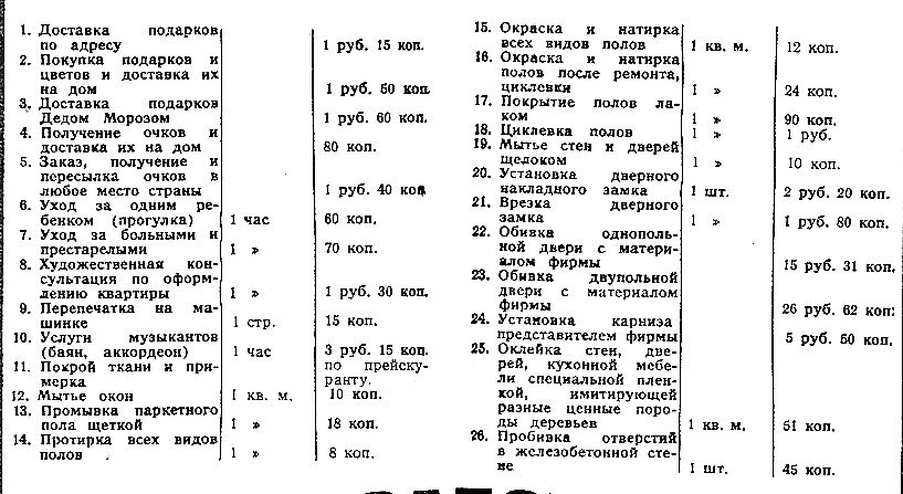 Когда в стране началось массовое строительство типовых домов с малогабаритными квартирами, возникла необходимость в расширении сферы бытовых услуг. Так, например, столичным монополистом в этой области была служба быта "Заря", с помощью которой можно было получить множество разных услуг, включая покупку и доставку продуктов на дом, комплексную или частичную уборку квартир, стирку/глажку белья, присмотр за ребенком и др. В 60-е годы в ассортимент бытовых комбинатов была добавлена новая услуга - вызов к ребенку на дом Деда Мороза и Снегурочки. Поскольку такая работа имела сезонный характер, то очень часто исполнители на эти роли набирались как из числа студентов театральных училищ, так и из молодежного актерского состава разных театров. Во многих подразделениях "Зари" существовало что-то вроде художественной комиссии, которая проверяла и утверждала костюмы главных героев, давала рекомендации по поздравительному тексту и примерному "сценарию" самого действа. Как правило, эти сценарии особ