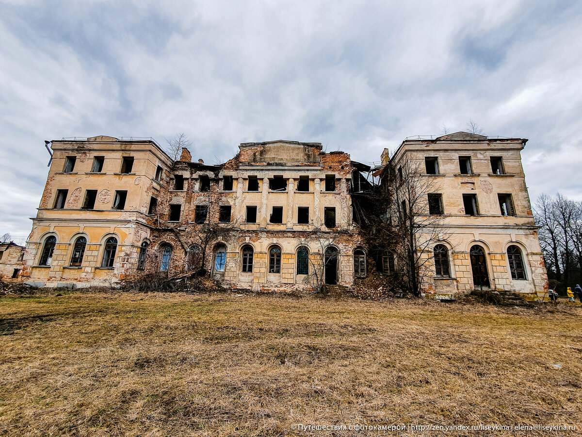 Во время войны тут шли бои, но усадьбе больше досталось после. Сначала в ней был детский сад, потом — библиотека и клуб. А в 90-е всё забросили. Но если присмотреться, можно увидеть остатки былого величия.