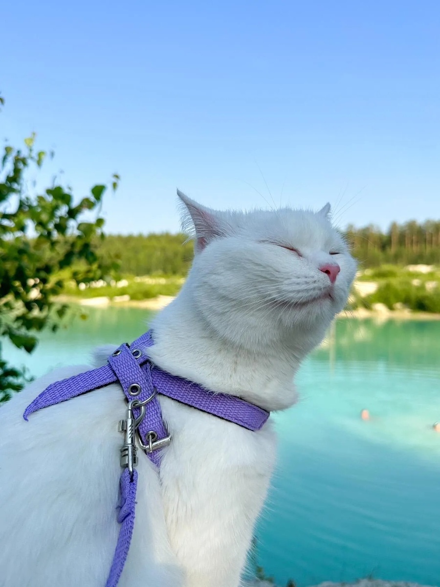Прежде всего - это безопасность! Поэтому у питомца должны быть проставлены все обязательные прививки и проведены обработки от внутренних и внешних паразитов. +должен пройти карантин 30 дней после прививок! Время для прогулок тоже нужно выбирать - чтобы не было слишком жарко или холодно. В сильную жару кошки (да и любые животные) могут получить тепловой удар, который опасен для их жизни! Поэтому под палящим солнцем гулять не стоит. С Аляской мы гуляли в солнечную погоду и старались гулять в тени. А вот, например, Мята не может гулять на солнышке. Поскольку у нее на спине и голове шерсть темного окраса, она моментально нагревается! С собой обязательно должна быть свежая вода и возможность быстро уйти в прохладное место. Внимание: кошки не чувствуют повышение температуры тела, пока ситуация не становится критической! Перед тем, как отпустить кошку лапками на землю, я обрабатываю живот и лапки спреем от клещей - его можно купить в любом зоомагазине. Не забывайте про шлейку! Без поводка о