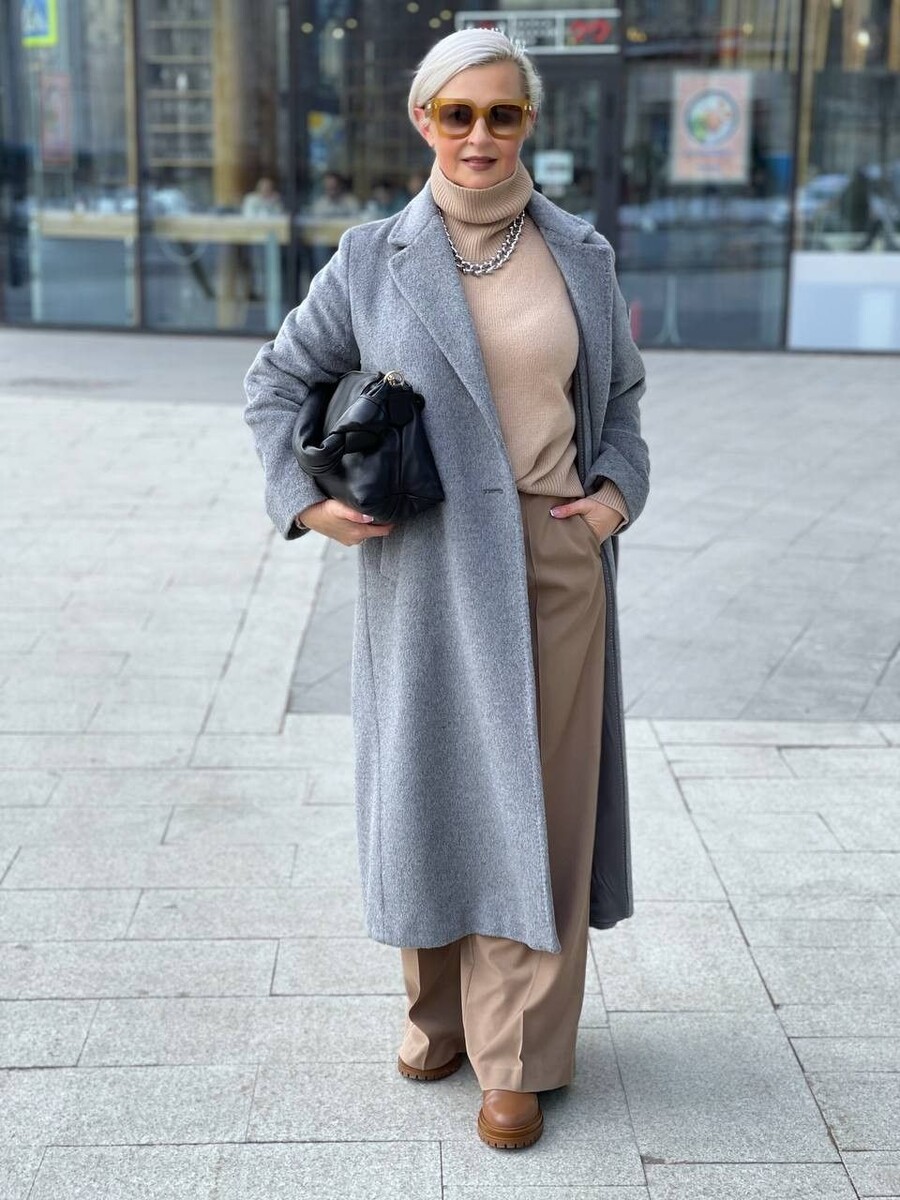 В зимнюю пору следует не только утепляться, но и соблюдать правила стиля. Женщинам за 60+ лет лучше отказаться от объемных и бесформенных пуховиков, аляповатых расцветок и других вещей, которые лишь прибавляют возраст. Элегантная и изящная одежда обязательно должна быть в гардеробе каждой женщины вне зависимости от возраста. К ним относятся: строгое приталенное пальто и кожаные плащи средней длины. Женщине за 60+ лет лучше всего носить одежду только своего размера. Блузки или пиджаки, которые жмут в области груди, или больших размеров туники и кофты прибавляют не только возраст, но и лишние килограммы. Одежда обязательно должна соответствовать размерной линейке. Первое, от чего рекомендуют отказаться некоторые стилисты, это яркие цвета в одежде. Связано это с тем, что ярко-красный, оранжевый, желтый и другие теплые оттенки не сочетаются с основной палитрой. Среди базовых цветов обязательно в гардеробе должны присутствовать следующие: Конечно! Вот обновленная палитра с измененными цвет