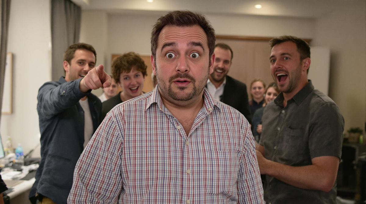 Идиома пошла не по плану. Язык запутался, а слушатели смеются. Эффект достигнут!