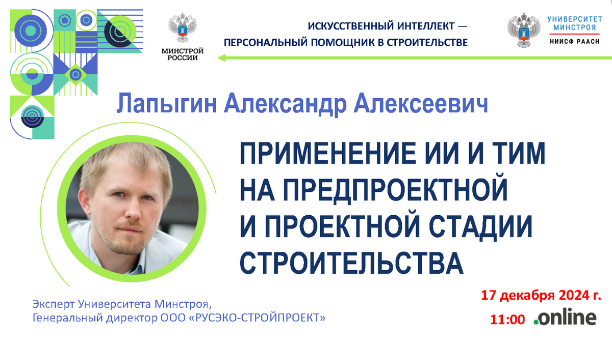 Вебинар. Применение искусственного интеллекта и технологий информационного моделирования на предпроектной и проектной стадии строительства