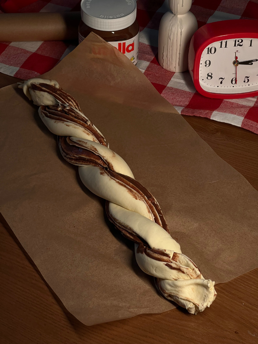 Этот рецепт настоящая находка! Люблю его за то, что для него не нужно замешивать никакого теста, подготавливать сложную начинку — всё максимально просто и необходимо максимум 2-3 ингредиента, а наличие всемилюбимой шоколадной пасты Nutella в составе сражу же ассоциируется с Новым годом и новогодними праздниками ИНГРЕДИЕНТЫ: 🍫 слоёное дрожжевое тесто 🍫 шоколадная паста Nutella АЛГОРИТМ: Данный рецепт пригодится вам, если гости уже на подходе, а у вас в доме ничего нет к чаю. Мне нравится данный вид выпечки тем, что для неё необходимо всего лишь несколько ингредиентов — в моем случае это всего лишь слоеное тесто и любимая шоколадная паста Nutella. Еще данный вариант выпечки удобен тем, что её смело и быстро модно сделать порционной — для этого в самом начале приготовим слоеное тесто нарезается широкими лентами, смазывается шоколадной пастой, разрешается на две части, сплетается в косичку и скручивается в порционные плетенки, они же булочки. Такой формат выпечки будет удобен дл