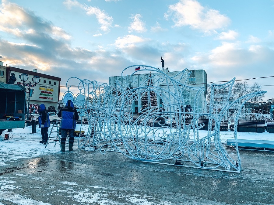 На Театральной площади сегодня монтируют фотозону «С Новым годом!» длиной 10 метров. Это новая инсталляция, закупленная в этом году. Также в этом году город приобрел светодиодную конструкцию «Коньки» высотой 2,5 метра, четыре двухметровые «Елки» и новую приемную Деда Мороза. «Коньки» уже установлены рядом с «Губернским катком» на улице Ленина. Приемную Деда Мороза установили на Театральной площади, она откроется 21 декабря. В тему: Иван ПРОХОРОВ Постоянный адрес новости на сайте «Друг для друга» ~ https://dddkursk.ru/lenta/2024/12/18/114601/. Новости Курска за ~ 18 декабря ~ декабрь 2024 года.