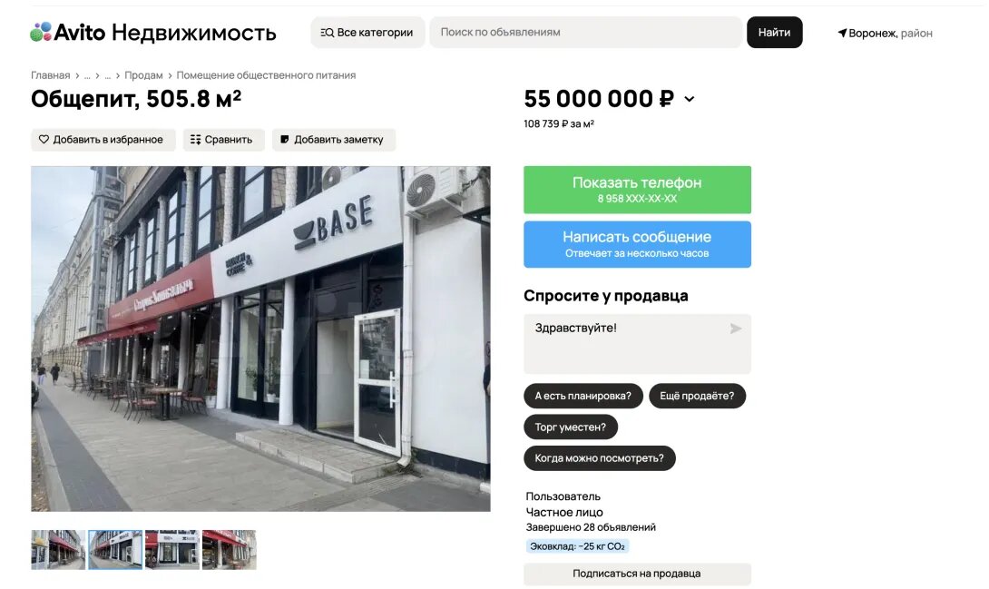 Коммерческое помещение, располагающееся на первом этаже одного из домов по улице Пушкинской выставили на продажу. На это обратили внимание журналисты местного бизнес-издания De Facto. Согласно данным открытых источников, по указанному адресу в настоящее время располагается кофейня Base, а также хинкальная. Нынешний собственник отмечает, что за счет удобной локации пространство отлично подходит для бизнеса. Здесь с одинаковым успехом может расположиться новый ресторан, кафе или все та же кофейня, либо салон красоты или, например, медицинский центр. Общая площадь двухэтажного помещения составляет 505,8 кв. м. Оборудовано три независимых входа, один из которых – со двора. Есть большие виражные окна, современная отделка. Объект оценивается в 55 млн рублей. Фото – «Авито». Не пропустить важное в ДЗЕН 36ON