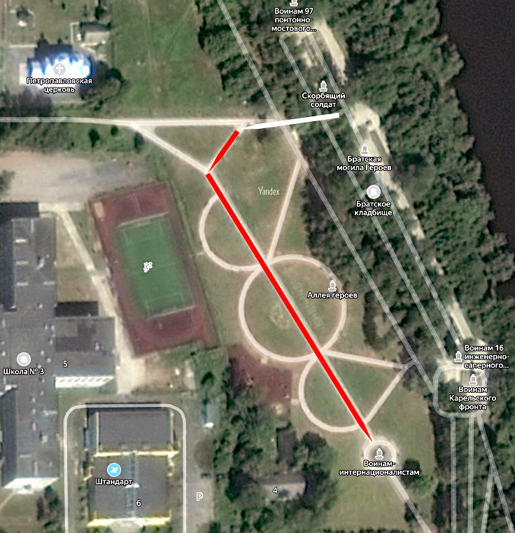 Когда-то заброшенный пустырь в течение года превратился в благоустроенную территорию, к востоку от которой находится Братское кладбище, на западе – школа №3 имени Героев Свири, на севере расположена Петропавловская церковь.