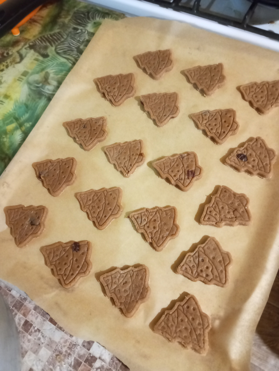 Спрашивали, рассказываю. Я беру рецепты из интернета, в основном на Russian food, так как повар из меня не очень, а кулинарный фантазер, это точно не про меня. Эти печенья больше на коржики похожи, но если подкорректировать, то будут помягче Сам рецепт 300-350 грамм муки пачка масла сливочного или маргарина 2 яйца 100 грамм сахара ванилин, разрыхлитель какао на любителя несколько ложек изюм, тоже на любителя Этот состав уже подкорректированный, на сайте было немного по другому. Яйца взбиваем с сахаром, добавляем растопленное масло, ванильный сахар. Потом муку, какао, разрыхлитель и измельченный изюм. Замешиваем тесто и ставим в холодильник на полчаса, как обычно рекомендуют авторы рецептов. Тесто очень пластичное получается. Раскатываем, вырезаем формочками и в духовку. У меня духовка газовая, я выпекаю печенье 10 минут при 200 градусах. Печенье не прям вау, но на скорую руку пойдет, очень хорошо подходит, когда хочется чего-нибудь к чаю.