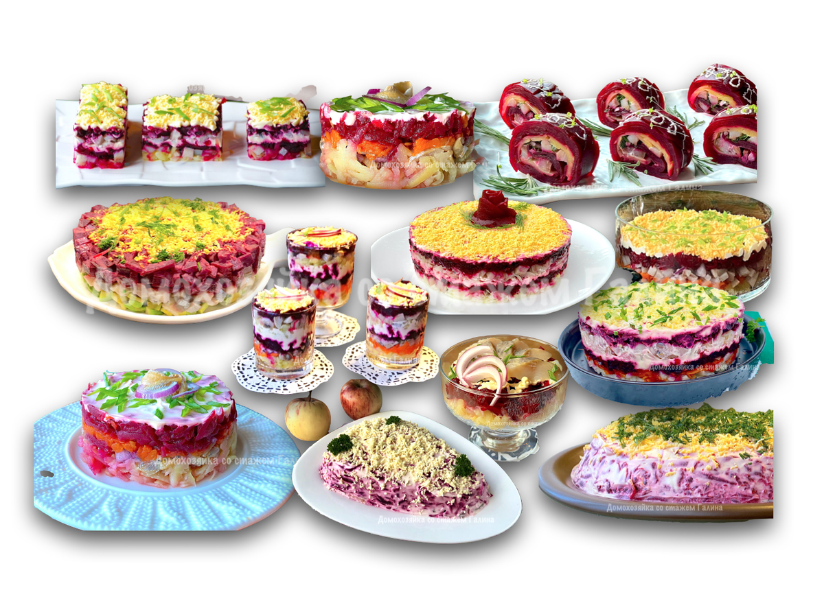 Друзья, вы, безусловно, знакомы с множеством вариаций знаменитого салата «Селедка под шубой». Каждая хозяйка готовит его по своему любимому рецепту, выкладывая слои в соответствии со своими вкусами и предпочтениями. Однако, помимо классических рецептов, существуют и другие варианты этого блюда, о которых мне хотелось бы вам рассказать. Возможно, вы захотите добавить новые оттенки в привычный вкус. Подача салатов в порционных бокалах выглядит интересно. Но, советую выкладывать слои не до верха, чтобы удобно было есть. Состав: