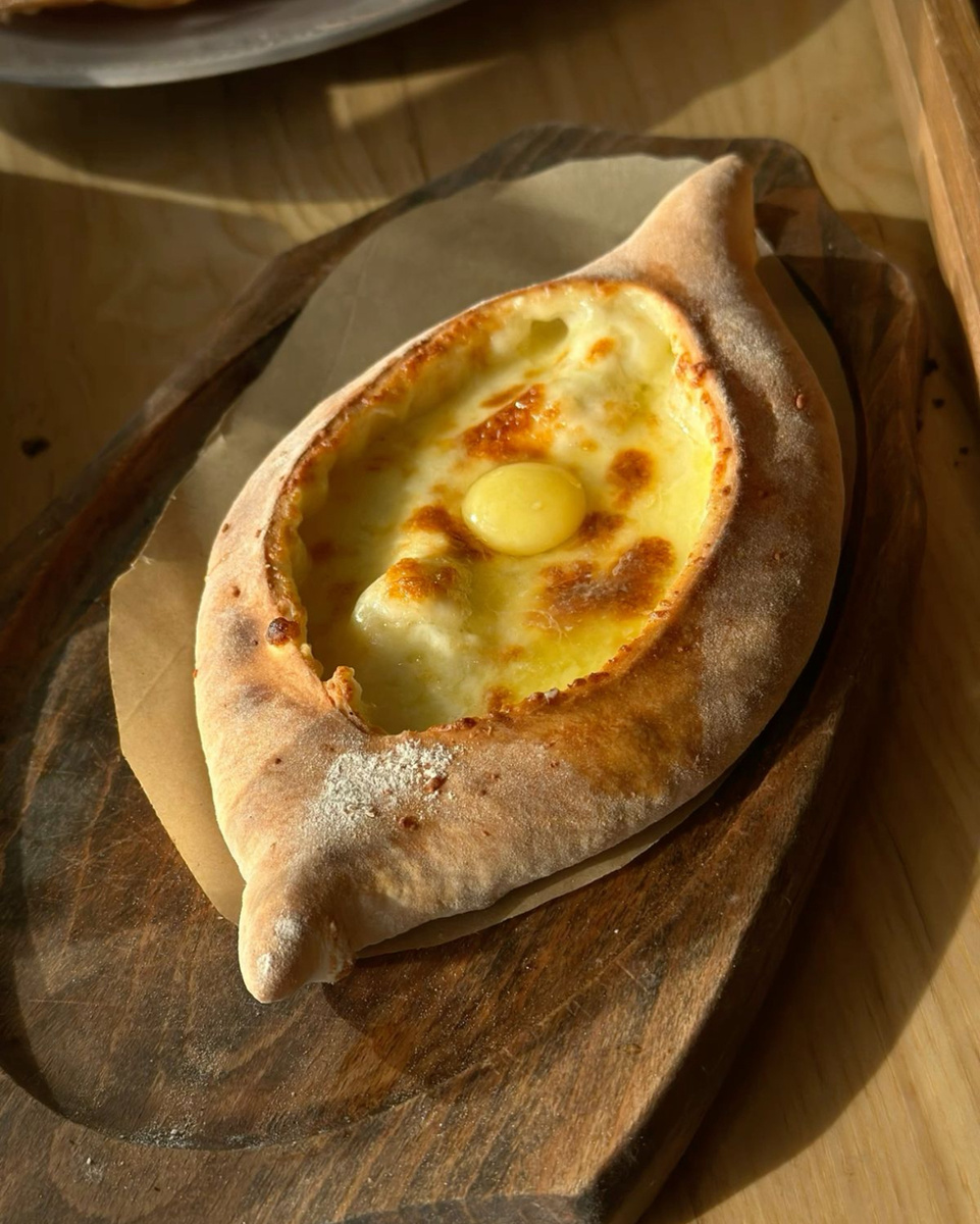 Хачапури по-аджарски — это традиционное грузинское блюдо, представляющее собой лепешку с сыром и яйцом, запеченную в форме лодочки. Этот ароматный и сытный пирог станет отличным угощением для вас и ваших близких. Давайте разберем пошаговый рецепт его приготовления. ▎Ингредиенты Для теста: • Мука пшеничная — 500 г • Вода — 250 мл • Дрожжи сухие — 7 г (или 25 г свежих) • Сахар — 1 ч. ложка • Соль — 1 ч. ложка • Оливковое масло — 2 ст. ложки Для начинки: • Сыр сулугуни или моцарелла — 300 г • Сыр feta или брынза — 150 г • Яйцо — 1 шт. (по желанию, для подачи) • Масло сливочное — 30 г (для смазывания) ▎Шаг 1: Приготовление теста 1. Активируйте дрожжи: В небольшой миске смешайте теплую воду (около 37°C), сахар и сухие дрожжи. Оставьте на 10-15 минут, пока смесь не начнет пузыриться. 2. Замесите тесто: В большой миске смешайте муку и соль. В центре сделайте углубление и влейте активированные дрожжи и оливковое масло. Замесите тесто. 3. Вымесите тесто: Перенесите тесто на п