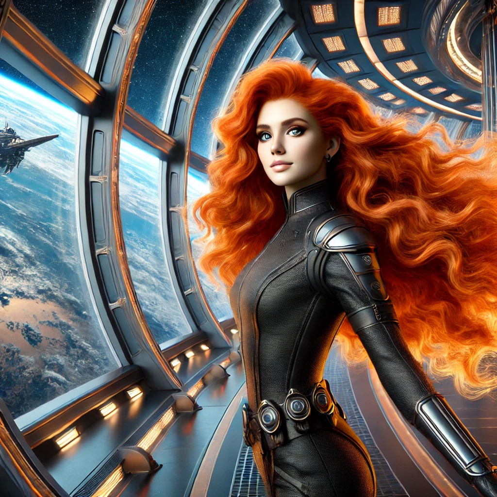 Я вначале планировал назвать эту иллюстрацию «Сандра в зале для тренировок в невесомости», но сеть, почему-то, сгенерировала там Эру Сон, вот что получилось: