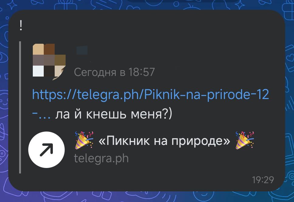 Недавно я получил сообщение от знакомой в социальной сети «ВКонтакте». В нем была просьба перейти по ссылке telegra.ph (блоги Телеграм) и поставить лайк, а затем кликнуть на её имя в ВК (она сменила фамилию). После перехода по ссылке я попал на сайт greenholt.rest/miaca, оказавшийся фишинговым ресурсом, созданным для кражи данных учетной записи Telegram. Этот ресурс создаёт параллельное подключение к вашему аккаунту (как при использовании web-телеграма) и сразу же получает доступ, удаляя ваше настоящее подключение. Этот случай заставил меня задуматься о подобных угрозах и поделиться своими наблюдениями. Фишинг – это такой тип обмана в интернете, когда тебе приходят письма или сообщения якобы от кого-то знакомого, а на самом деле это мошенник. Он хочет хитрым способом узнать твои личные данные, например, пароль или номер телефона. Часто такие письма ведут на фальшивые сайты, которые очень похожи на настоящие, но сделаны специально, чтобы тебя обмануть. Вот несколько признаков, на которы