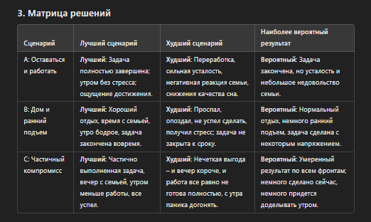 Проверил сам — и был впечатлён. Такой подход не только помогает взвесить все "за" и "против", но и делает процесс выбора логичным и понятным.