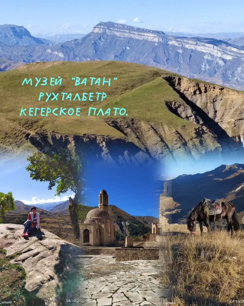 Потом на внедорожнике, по очень крутой горной дороге , через село Согратль, поднялись на вершину горы Рухталбетер с которой открывается потрясающие виды на окрестности и аул-призрак Гамсутль с высоты птичьего полёта.