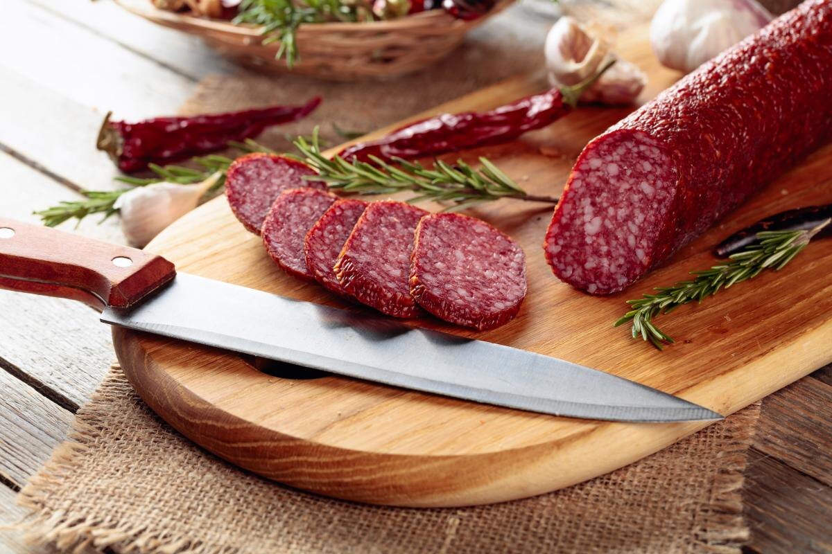 Есть несколько причин, почему колбасу режут по диагонали, а не ровно. Вы никогда не задумывались, зачем колбасные изделия нарезают под некоторым углом? Принято считать, что так она выглядит красивее - и это отчасти правда, но не только поэтому. Рассказываем, почему колбасу режут под углом и как правильно ее резать, чтоб было вкуснее. Начнем с того, что по диагонали принято нарезать копченые колбасные изделия. Колбаса-"варенка" - это по сути однородная масса, ее можно резать под прямым или косым углом, на вкусе это никак не отражается. Но вот копченую колбасу, которую делают из измельченного мяса, правильно резать наискосок. И вот почему: Но и это не все - нарезка, оказывается, отражается на вкусе копченостей. Вот как правильно резать колбасу под углом, чтобы раскрыть ее вкус: