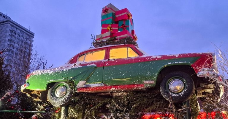 В Москве стали как-то больше экспериментировать с новогодними украшениями. В последние годы была риторика, что нужно, наоборот, использовать старые — и вот теперь подход меняется. «Летающие автомобили на Новом Арбате? Да! Там появился новогодний лес, а на верхушках елок — ретромашины с подарками», — пишет агентство «Москва», опубликовавшее фотографии. Инсталляцию анонсировали еще давно, и вот теперь ее можно увидеть своими глазами. Организаторы обещали «зимний лес с елями, пихтами и яркими кустарниками», но, честно сказать, пока ничего особенно яркого не видно. Рендеры выглядели как-то более празднично. Возможно, инсталляцию еще не доделали. Что символизируют летающие ретромашины? Возможно, речь о том, что в 2025 году продолжится возрождение отечественного автопрома. А может быть, авторы вдохновились «Гарри Поттером» — помните, как Гарри с Роном летят в Хогвартс на старом «Форде» во второй части? Или отечественным супергеройским боевиком «Черная молния» про летающую «Волгу»? Организато