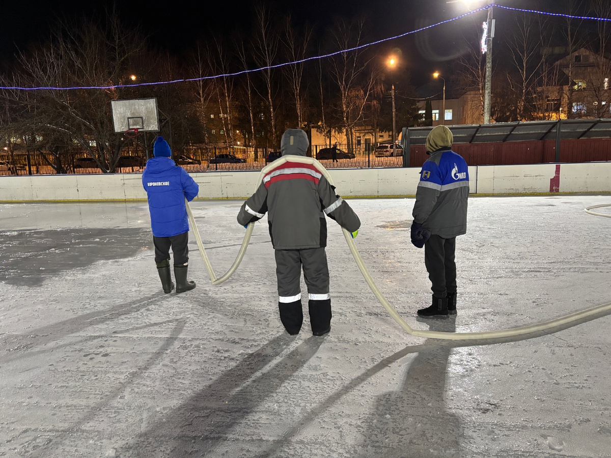 Продолжается заливка катка на территории МБУ "СК "Вороново"