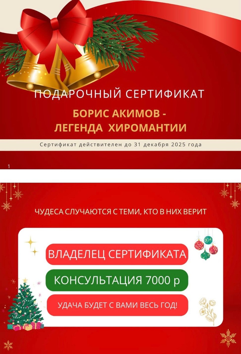 И удача будет с ним весь год! Новогодние скидки! 🎄 1) Консультация - 7000 руб. (онлайн - 5000 руб.); 2) Коррекция - 10 000 руб. (онлайн - 3000 руб.); 3) Консультация+коррекция - 15 000 руб. (онлайн - 7000 руб.) 4) Обучение хиромантии - 50 000 руб. (онлайн - 40 000 руб.) Для заказа пишите на WhatsApp: +7 984 778 05 27