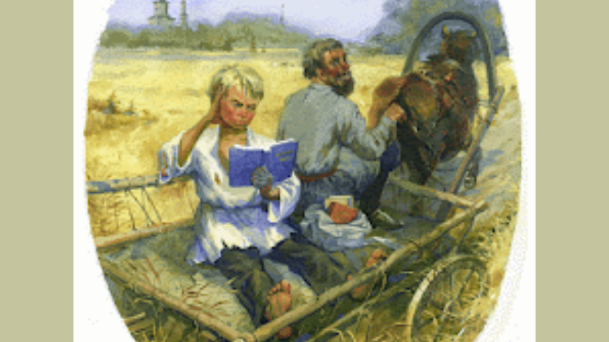 Из истории создания этого стихотворения надо отметить год – 1856 – это год вступления на престол Александра 2, которому суждено будет стать Освободителем и не только положить конец неудачной Крымской войне 1853-1856, но и отменить крепостное право. Но на момент создания стихотворения реальность печальна – Крымская война только что окончена, Россия много потеряла в этой войне. Многие, очень многие крестьянские дети осиротели из-за этой бойни со слабой Турцией, которую поддержали западные страны, чтобы не дать торжествовать России. Страна обескровлена в результате политики вмешательства Англии и Франции, которой способствовали прозападные министры России. Стихотворение открывается печальной картиной: это подчеркивается эпитетом «невеселая дорога» и портретом мальчугана, которого подсадил к себе лирический герой. — Ну, пошел же, ради бога!