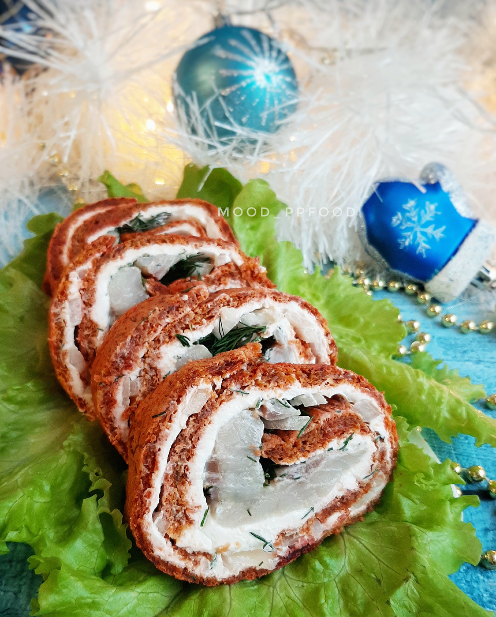 1️⃣1️⃣ Готовый рулет нарезаем на порции и подаём.