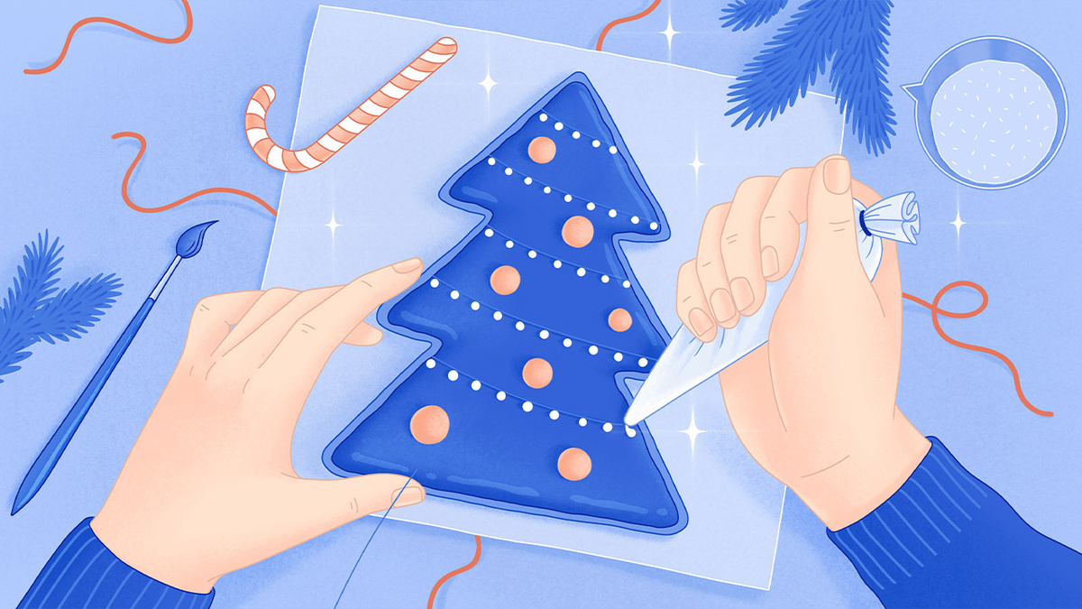 - Новогодние предметы декора: еловые венки, украшения на елку, гирлянды, открытки
