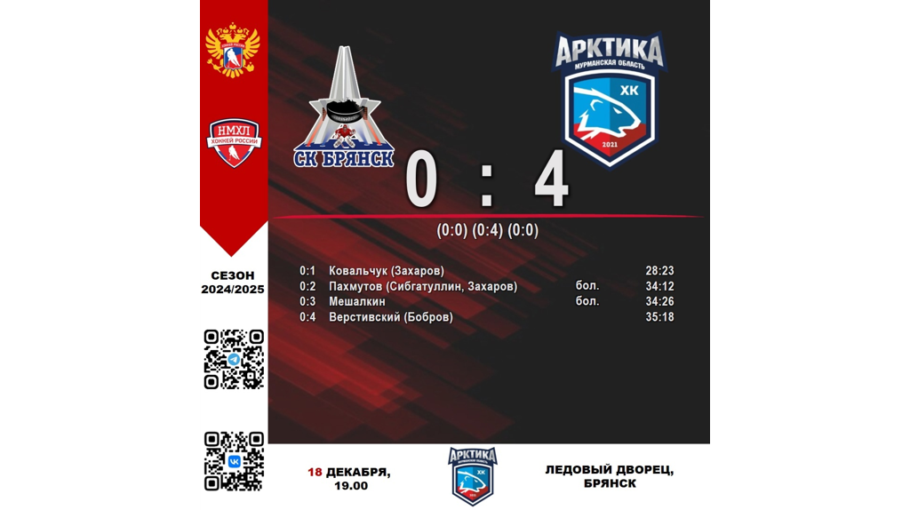 Хоккейный клуб «Брянск» проиграл и второй домашний матч в первенстве НМХЛ мурманской «Арктике». Все основные события сегодняшней встречи развернулись во втором периоде. Гости забили в ворота нашей ледовой дружины четыре безответные шайбы.